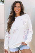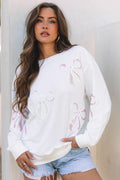 White Sequin Bowknot High Low Oversize Sweatshirt