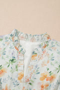 Green Floral Friled V Neck Puff Sleeve Ruffled Shirt Dress
