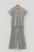 Beige Leopard Print Casual Tee and Pants 2pcs Outfit