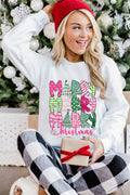 Beige MERRY Christmas Heat Transfer Printing Crewneck Pullover Sweatshirt