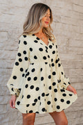 - This short dress for ladies is effortlessly chic with polka dot print.Flattering surplice V-neckline makes wearers feel sexy and perfect to match fave necklace.Stylish puff sleeves add a trendy touch to this polka dot dress.Mini length adds a playful and flirty look to this graceful piece.