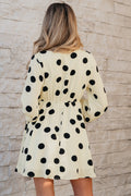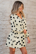 Sale Beige Polka Dot Printed Surplice V Neck Puff Sleeve Mini Dress