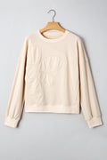 Beige Raw Edge Flower Patch Drop Shoulder Casual Top