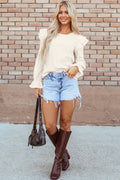 Sale Beige Ruffled Flounce Sleeve Corduroy Blouse