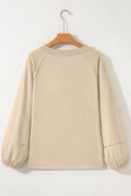 Sale White Solid Color Seam Detail Raglan Long Sleeve Top