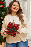 Beige Star Shape Studded Crew Neck Plus Size T Shirt