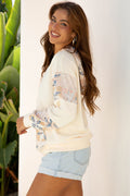 Colorful Ribbed V Neck Braided Print Long Sleeve Regular Sweatshirt