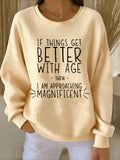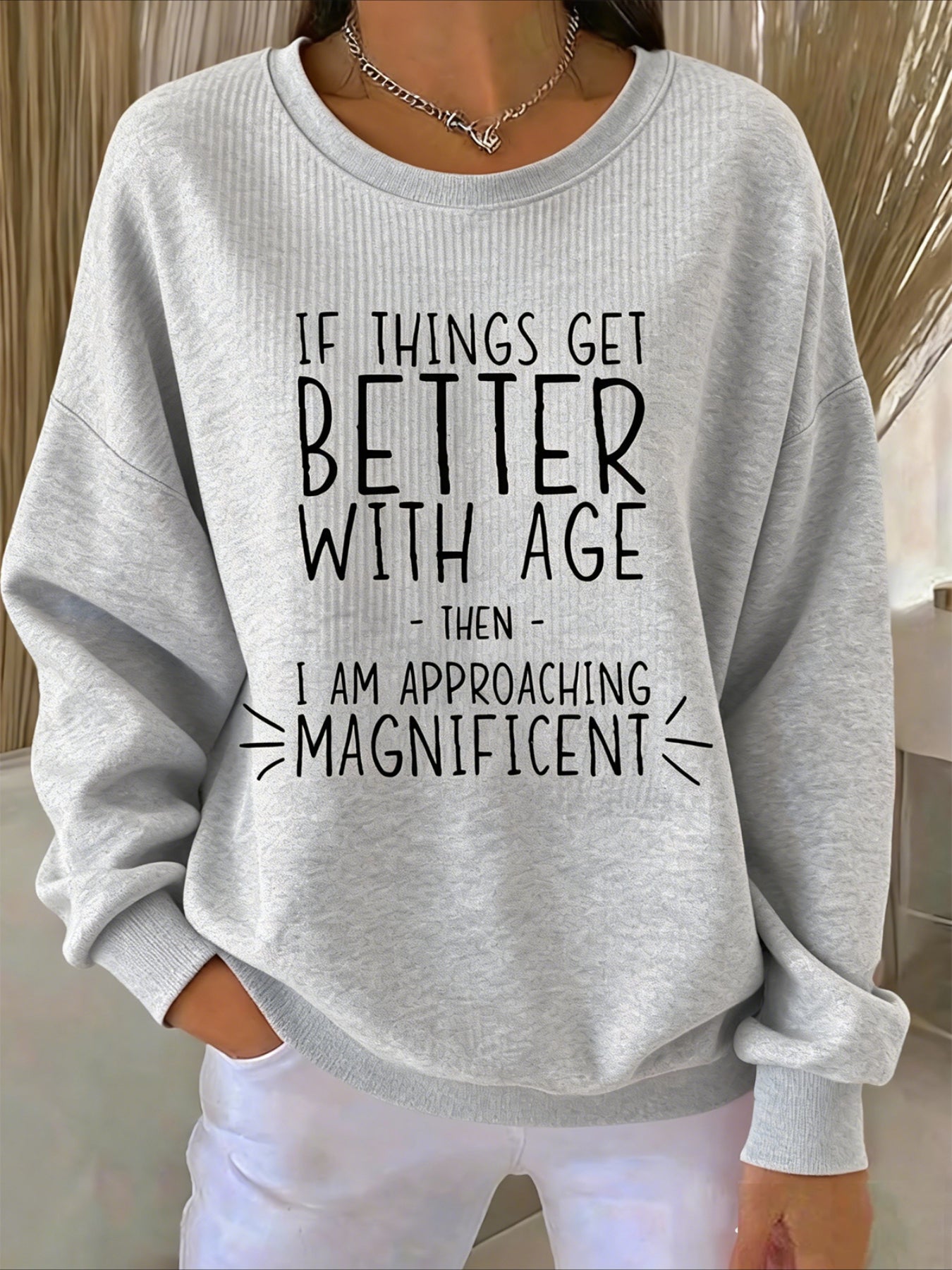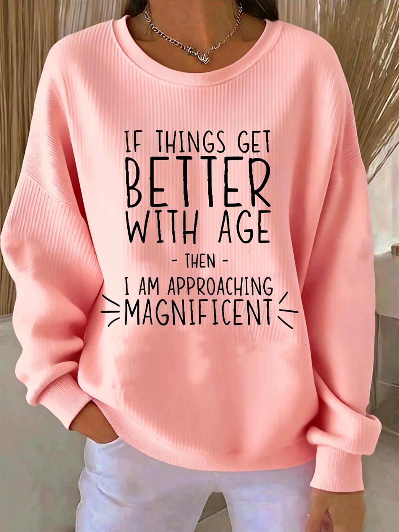 Text Printing Crew Neck Floral Long Sleeve Sweater Hoodie