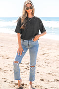 Sale Light Grey USA Lettering Patch Notched Neck Loose Tee