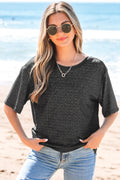 Sale Black Bow Decor Glittery Short Sleeve Top