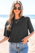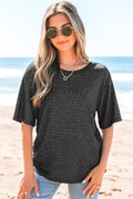 Sale Black Stripe Half Sleeve Scoop Neck Loose Top