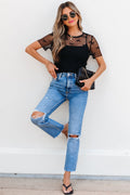 Sale Black Bow Knot Dotted See-through Mesh Patched Slim Fit Blouse