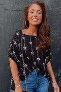 Sale Rose Leopard Shirred Puff Sleeve Flowy Blouse