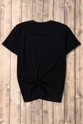 Black Checkerboard Bowknot Graphic Crewneck T Shirt