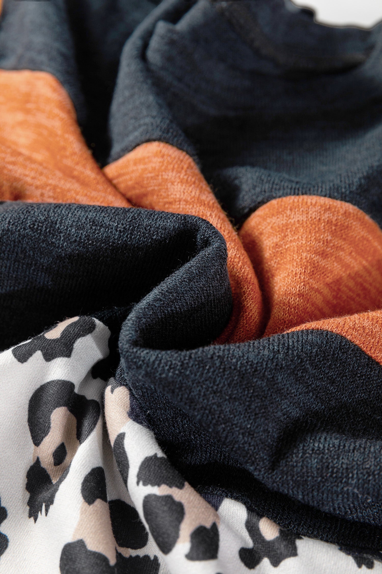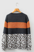 Black Color Block Leopard Patchwork Long Sleeve Casual Top