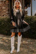 Sale Black Contrast Stitched V Neck 3/4 Sleeve Tiered Mini Dress