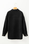 Black Corduroy Flap Pocket Button Up Shacket