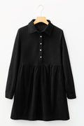 Black Corduroy Half Button Collared Long Sleeve Mini Dress
