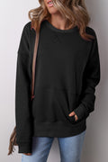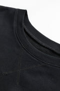 Sale Black Drop Shoulder Crisscross Stitching Pocketed Loose Sweatshirt