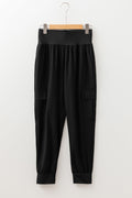 Sale Black Elastic High Waist Pocketed Cargo Jogger Pants