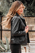Black Faux Leather Buttoned Front Boxy Jacket
