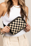 Black Faux Leather Checkered Patchwork Crossbody Waist Bag