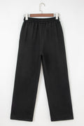 Black Fleece Lined Leopard Drawstring Elastic Waist Solid Pants