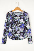 Sale Black Floral Print Mesh Fitted Long Sleeve Top