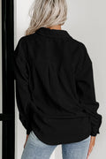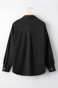 Sale Black Solid Textured Flap Pocket Buttoned Shacket