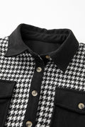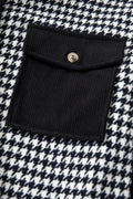 Sale Black Houndstooth Corduroy Patchwork Flap Pocket Shacket