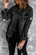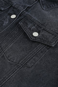 Black Lapel Distressed Raw Hem Buttons Denim Jacket