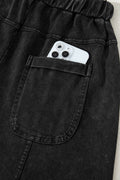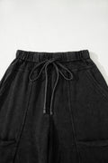 Black Mineral Wash Exposed Seam Drawstring High Waist Wide Leg Cargo Pants