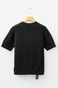 Black Plaid Lace up Detail Christmas Holiday Puff Short Sleeve Sweater