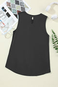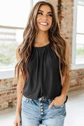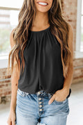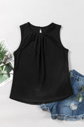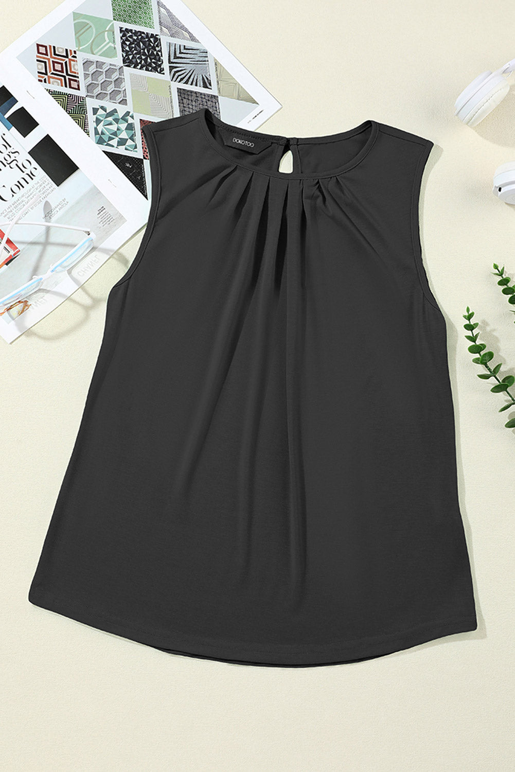 - This sleeveless top features pleated details for added texture and style.Round neck design offers a classic and versatile fit.Soft and breathable fabric ensures all-day comfort and ease of wear.Great for both wearing solo or layering with shirts.