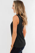 Sale Blue Sapphire Solid Color Stitching Detail Round Neck Tank Top