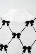 Black Preppy Vibes Bow Print Zipped Collar Sweater Tee