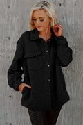 Sale Black Solid Textured Flap Pocket Buttoned Shacket
