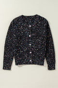 Black Rhinestone Decor Multicolor Confetti Sweater Cardigan