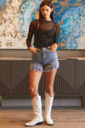 Black Rhinestone Sheer Mesh Slim Fit Long Sleeve Top