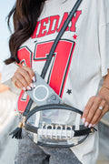 Black Rugby Football Contrast Trim Fringe PVC Clear Shoulder Bag