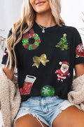 Black Sequin Christmas Essentials Graphic Crewneck T Shirt