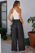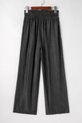Black Side Pockets Frilled Smocked High Waist Wide Leg Jeans