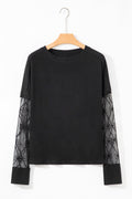 Black Solid Color Bow Textured Patchwork Long Sleeve Tee