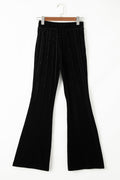 Sale Black Solid Color High Waist Flare Corduroy Pants