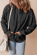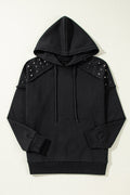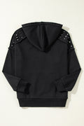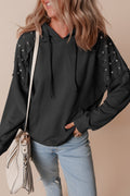 Sale Black Solid Color Rivet Stud Raglan Sleeve Hoodie with Pocket
