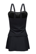 Black Solid Square Neck Sleeveless Tankini Swimsuit