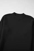 Black Solid Textured Knit Split Cuff Drop Shoulder Loose Sweater