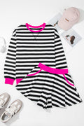 - Embrace style with striking striped and color contrast.Stay comfortably chic with ribbed banding design.Experience a relaxed fit with the loose silhouette.Effortlessly trendy with long sleeves for added flair.