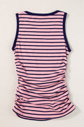 Black Stripe Contrast Round Neck Sleeveless Slim Top