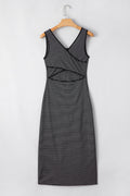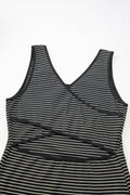Black Stripe Criss Cross Side Slits Slim Fit Sleeveless Midi Dress